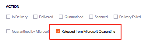 Note: You can use the Action > "Released from Microsoft Quarantine" filter to display only those emails that have been released from quarantine, after they were quarantined by Microsoft. For details, see Advanced filters. |
