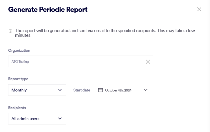 You can also generate Periodic reports on-demand. For details, see Generating Periodic reports on-demand below.