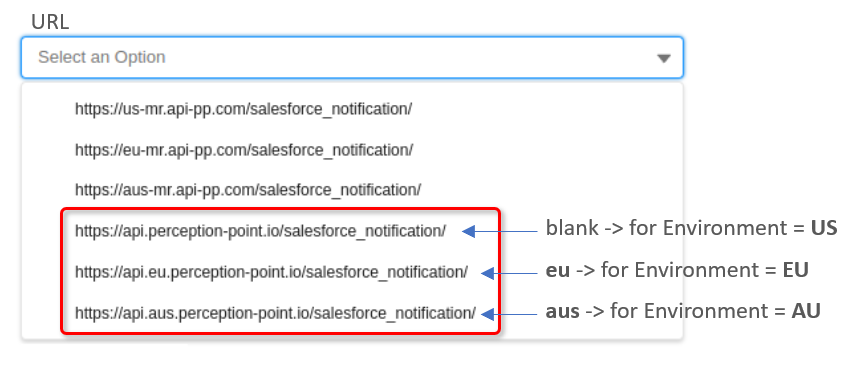 Select the URL option that is "blank" if your environment is "US" [see the graphic below]